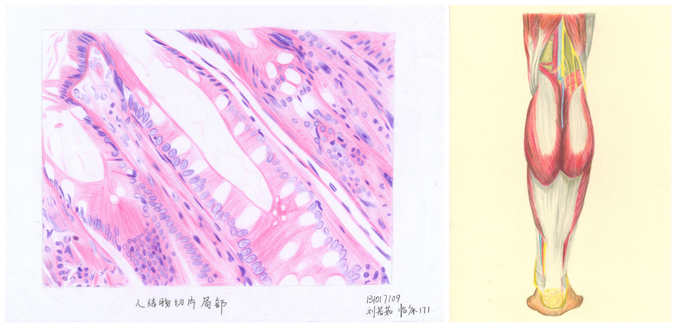 本次活动分为初赛、决赛及展示三个阶段。初赛自5月18日开始,参赛同学以人体解剖学或组织胚胎学为主要内容,自选主题、自由创作,在强调科学严谨性的同时,充分发挥个人想象力进行绘画。至5月28日报名结束,大赛共收到解剖绘画作品近80幅,来自7个公司的同学们用线条和色彩勾勒出了人体结构或主要器官的解剖学形态。作品内容多样,想象丰富,既体现了人体解剖学的严谨,又彰显了艺术创作的华美,异彩纷呈。经过专业评委的评选,来自6个公司的10位选手入围决赛。