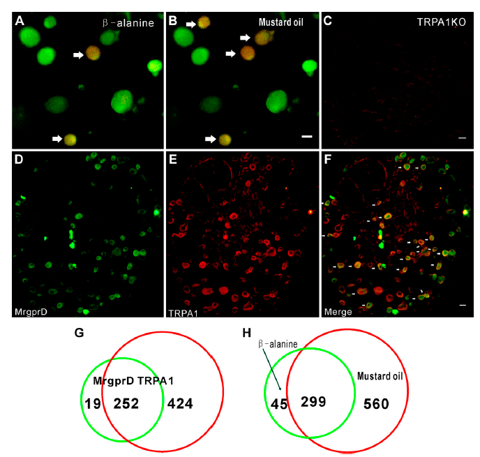 图 2. MrgprD阳性的神经元和TRPA1共表达