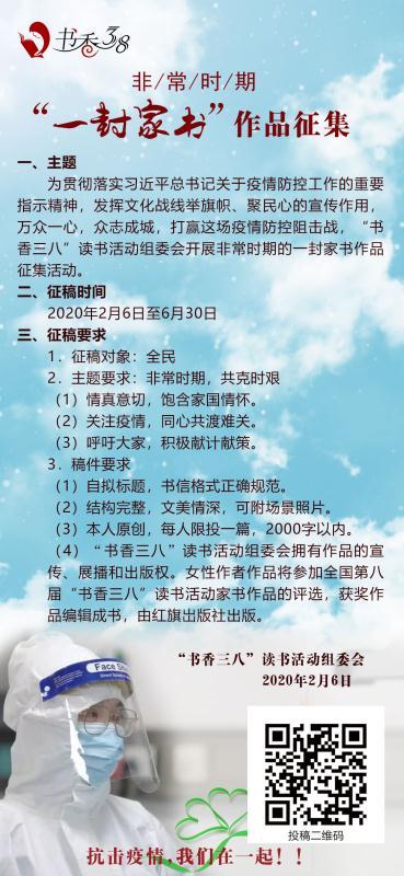 积极组织教职工按照《关于联合举办第八届“书香三八”读书活动的通知》(附件1)及《“非常时期”一封家书作品征集》通知要求(附件2),积极参与读书活动与家书征集活动,引领女教职工提升文化素养、凝聚文化力量,并于6月20日前将收集到的征文和家书一并发至分工会邮箱: yxygh@njucm.edu.cn。