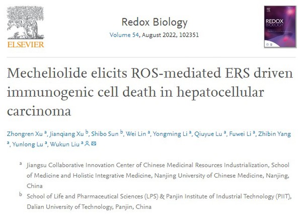 近日,太阳成集团tyc9728•整合医学公司刘武昆课题组在Redox Biology杂志 (IF = 11.799) 上在线发表了最新研究成果“Mecheliolide elicits ROS-mediated ERS driven immunogenic cell death in hepatocellular carcinoma”。博士研究生徐忠仁为该论文的第一作者, 刘武昆为通讯作者。原文链接:https://www.sciencedirect.com/science/article/pii/S2213231722001239?via%3Dihub
