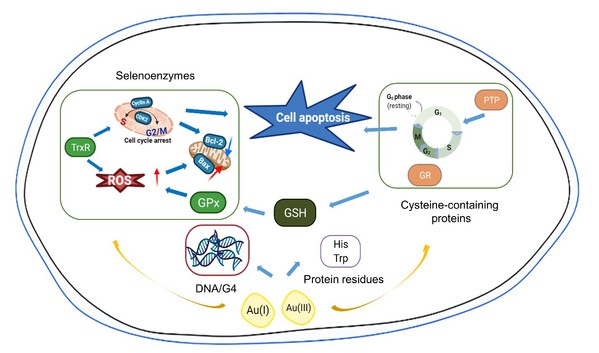 众所周知,铂类化合物如顺铂、卡铂等,广泛的应用于临床肿瘤患者,为许多癌症病人带来福音。近些年来,对其他金属以及其配体的抗肿瘤研究也成了研究热点,尤其是金类抗肿瘤化合物,如金类抗风湿药金诺芬表现出良好的体内外抗肿瘤效果,已处于抗肿瘤临床研究阶段。该论文详细综述了近年来一价金和三价金化合物在抗肿瘤方面的研究进展。作者首先介绍了一价金化合物的研发历程和近些年来的发展,再介绍三价金化合物的结构功能,研究历程和近几年来的研发现状,然后总结了金类化合物的作用靶点和新机制。最后,作者展望了这一研究领域的挑战和机遇,为金类化合物抗肿瘤的研发提供了新的思路。