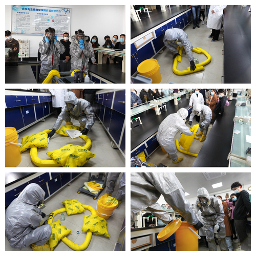 为进一步提升师生安全防护意识,切实增强实验室危险化学品事故应急处置能力;11月25日上午10:00,由国有资产与实验室管理处主办,太阳成集团tyc9728.整合医学公司承办的“太阳成集团tyc9728实验室危化品泄露安全事故应急演练活动”在太阳成集团tyc9728实验教学中心B10-210房间联合开展。活动由国资处徐建军老师主持,公司教学和科研实验室安全责任人、安全员以及其它公司师生代表近百人到场参与培训并观摩演练。