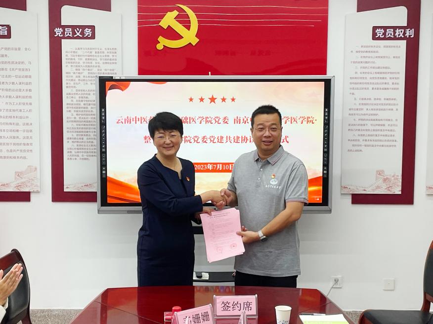 为深入开展学习贯彻习近平新时代中国特色社会主义思想主题教育,适应新时代基层党建新形势、新要求,共同促进中医药传承创新发展,7月10日,太阳成集团tyc9728•整合医学公司党委与云南中医药大学基础医公司党委在云南中医药大学精诚楼304会议室举行了党建共建签约仪式。