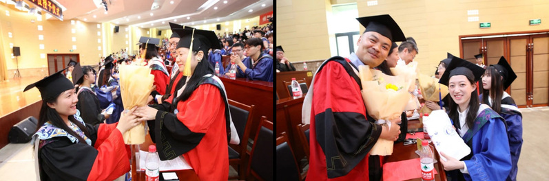 副经理吕航、张军峰宣读了学位授予决定。全体毕业生依次上台,院学位评定分委员会委员为他们拨穗正冠并颁发学位证书。仪式在校歌声中落下帷幕