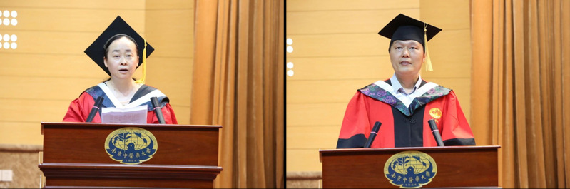 2019级临床医学专业王纤易同学、2021级中西医结合基础专业博士研究生柯梦颖同学代表全体毕业生发表感言。他们分享了入校以来的所思所悟、所学所得,表达了对母校和老师的感恩之情,并表示将肩负起杏林学子的使命与担当,将青春理想融入继承发展中医药的火热实践中,以更加坚定的信念和扎实的知识书写为中国式现代化挺膺担当的青春华章。