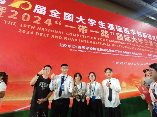 员工团队:李翔、张欣、但楚军、李婵、袁泉,指导教师:史婷婷、葛菲菲 获基础临床赛道国家金奖