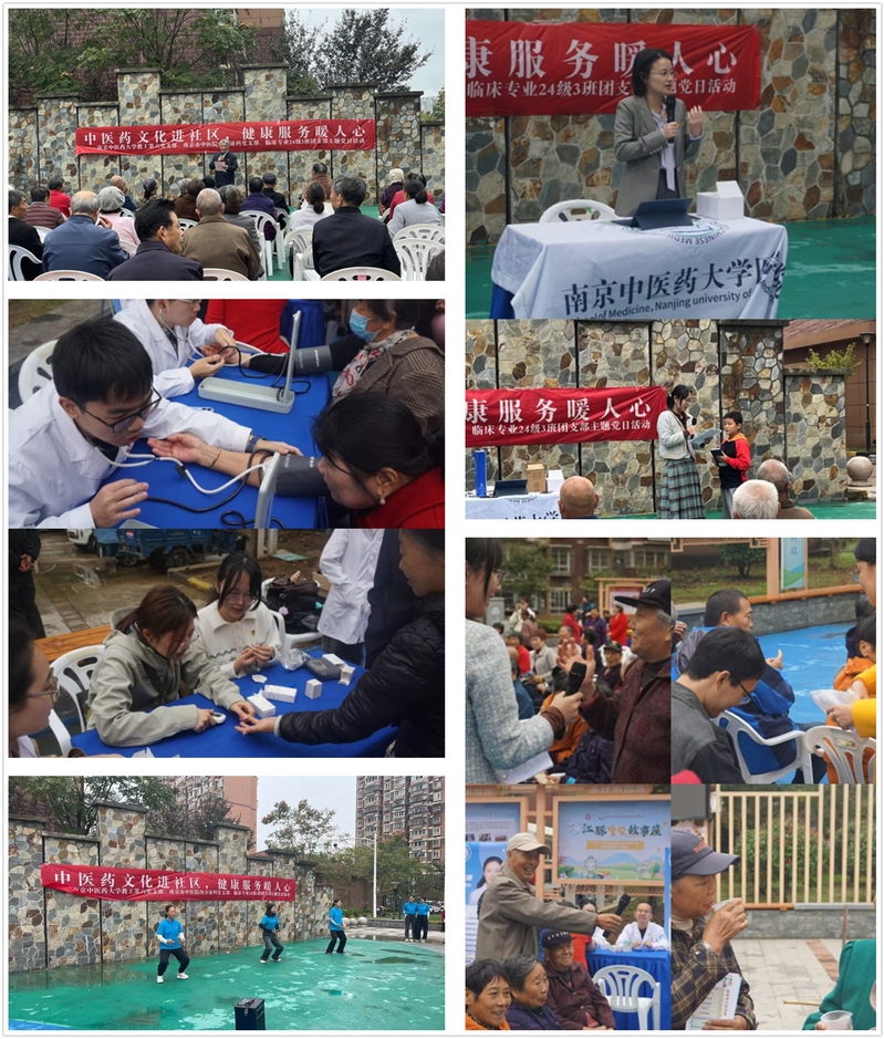 活动中,社区广场设置多个中医药健康志愿服务区域。在义诊区,市中医院内分泌科的医生们为居民一对一的把脉诊疗与健康指导,让居民在家门口就能享受到高品质的中医诊疗服务;在医疗体验区,六支部党员老师带领员工志愿者为居民们提供免费测量血压和血糖的便民服务,并发放健康用药的知识宣传单页,帮助居民预防基础疾病;在中医药文化展示区,通过发放中医药特色香囊、提供养生热饮,展示八段锦、太极拳等中医养生功法等让社区居民亲身感受中医文化的独特魅力。