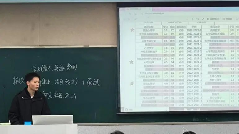 陈汶学长分享了他在推免过程中遇到的挑战与困难,以及逐一解决的方法,为学弟学妹们的推免之路提供了宝贵的经验。同时,他还深入介绍了应用心理学专业的重点课程,并展示了如何巧用思维导图这一高效学习工具梳理知识脉络,让复杂的知识点变得清晰易懂,为同学们的学习提供了新的思路与方法。