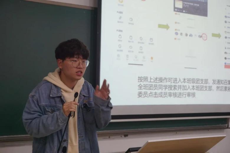 外联部部长张欣从组织关系转接、团员信息变更、团课录入、团员评议四个方面,详细介绍了如何在智慧团建上加强团支部建设。她提醒新生团干注意聚焦重大时间节点,开展示范性主题团日活动,并及时做好总结记录工作。