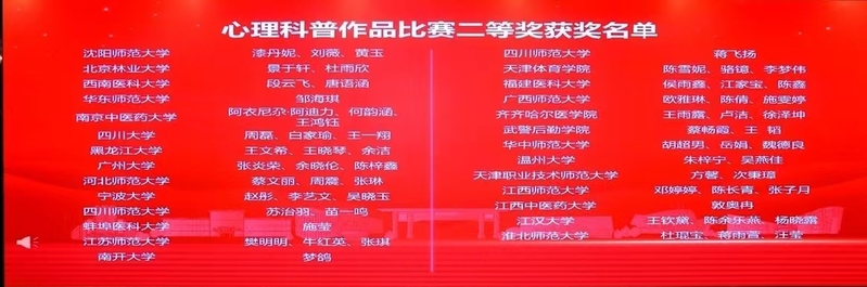 2024年全国应用心理专业学位研究生实践技能大赛(决赛)于12月8日在华中师范大学举行。公司应用心理专业硕士研究生阿衣尼尕·阿迪力、何韵涵、王鸿钰组成的团队荣获心理科普作品赛道全国二等奖。