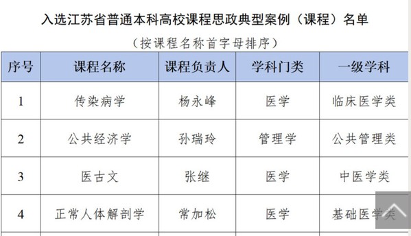 近日,江苏普通本科高校课程思政典型案例入选名单公布,公司《正常人体解剖学》入选江苏普通本科高校课程思政典型案例(课程),这是该课程在获得省级及国家级线上一流课程后取得的又一新的成绩。