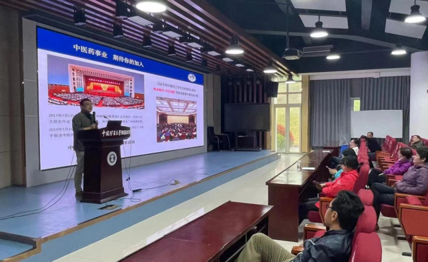 刘全勇老师全面介绍了公司历史沿革、学科特色、人才培养、文化教育、招生政策等方面内容,他还详细解读了中医药在国家发展大局中发挥的作用,吸引了家长们对中医药文化的兴趣。