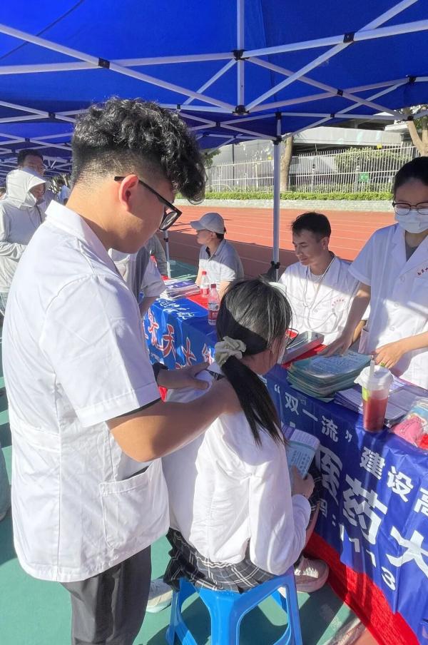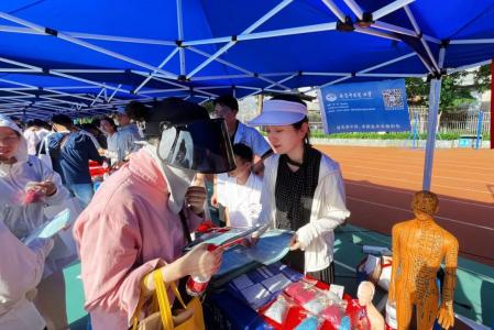 当天,咨询会现场人流如织,来自南京各地的初中、高中员工和家长怀揣着梦想和希望汇聚于此。公司师生用心准备了针灸穴位模型、人体解剖模型、中药香囊等展品以彰显公司医药特色,并现场提供量血压和推拿等医疗健康体验服务,吸引了一批批员工和家长来观摩体验。