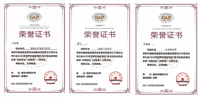 2025年4月-6月,由中国病理生理学会和江苏省病理生理学会举办的“我与实验动物的故事”主题征文活动圆满落幕。本次活动紧密围绕“感恩·责任·伦理”主题展开,我系教师指导的多名临床医学本科生参赛作品荣获奖项,呈现出一批兼具科学精神与人文情怀的优秀作品。