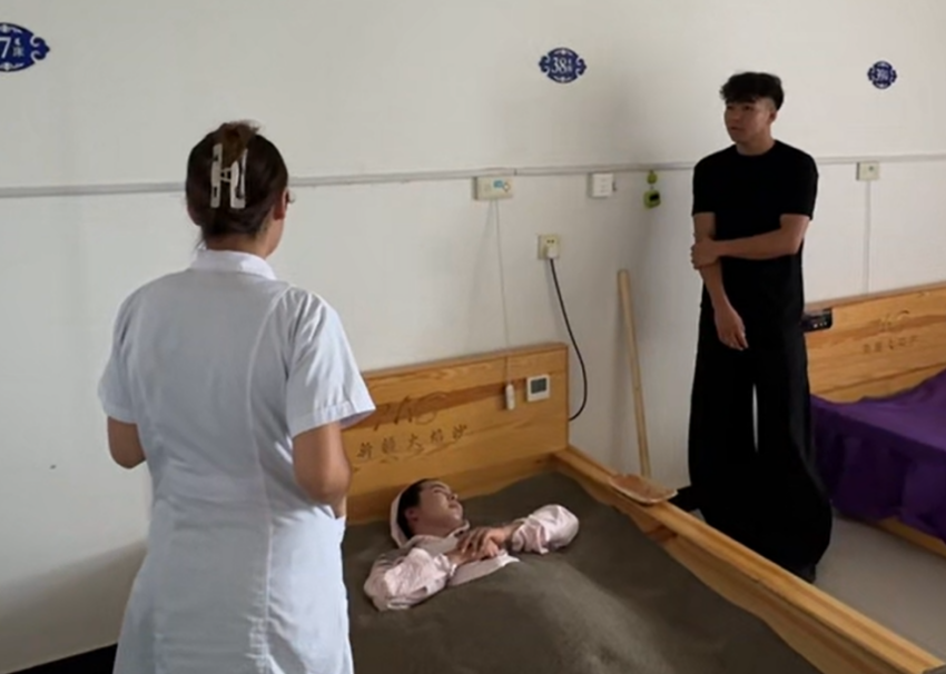 调研团同学向当地维医请教了埋沙疗法的方法和作用原理,了解了接骨的奇妙功效。