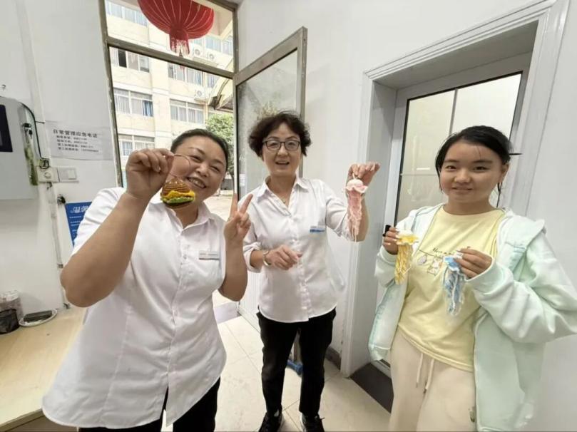 活动最后,同学们手持着自己精心制作的绒线作品合影留念,脸上洋溢着自豪与满足的笑容。承载着同学们心意的作品,也被悉心赠送给宿管阿姨、保洁人员、行政老师等默默守护校园的教职工们,将这份亲手创造的温暖在校园的各个角落传递开来。