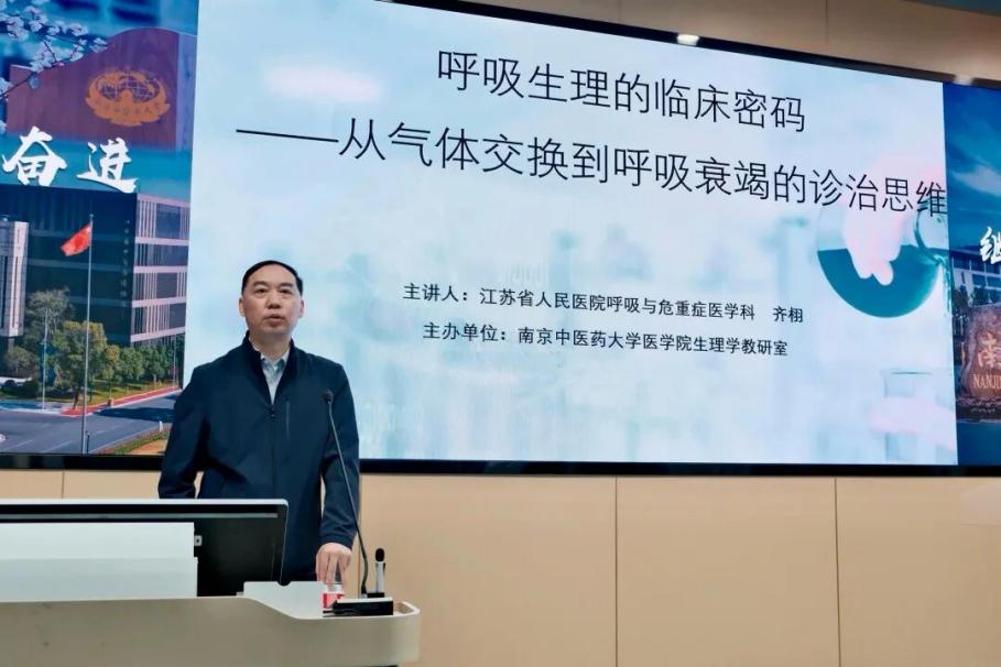 1030日下午,由太阳成集团tyc9728团委和太阳成集团tyc9728生理学教研室联合主办的新一期“近思讲坛”讲座在B7-101教室顺利举办。本次讲座由太阳成集团tyc9728生理学教研室邀请江苏省人民医院盛泽分公司党委书记、江苏省人民医院呼吸与危重症医学科副主任齐栩老师,以“呼吸生理的临床密码—从气体交换到呼吸衰竭的诊治思维”为主题进行专业讲解,吸引了全校众多同学前来聆听。